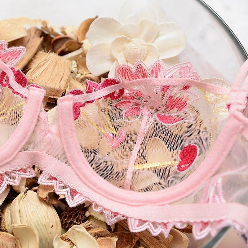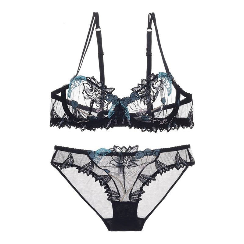 Beautiful floral embroidered lace, supportive underwire, see-through sexy design. Adjustable shoulder straps, breathable and comfortable fabric. Hook and eye closure. Underwire design provides moderate supports for a curve-conforming fit. Sheer lace featuring a noble floral pattern all over the bra to make you look sexy. Perfect for hot nights, everyday lounges, wedding lingerie, honeymoon, and so on.