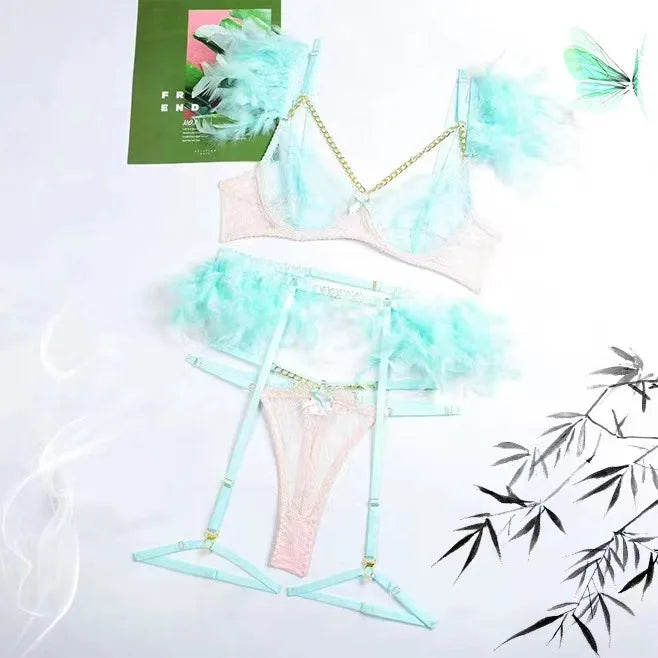 - Set Includes: Bra, panties, and matching accessories.