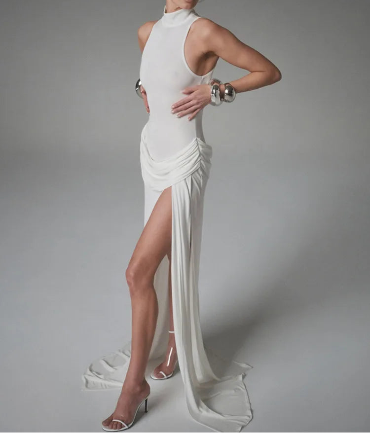 This summer split maxi tank dress delivers a sleek, polished look ideal for evening moments and upscale gatherings.