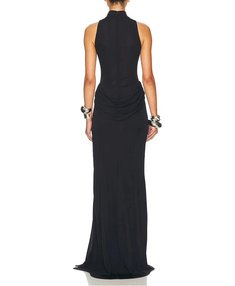 This floor-length design brings a luxurious finish suited for parties and club events.