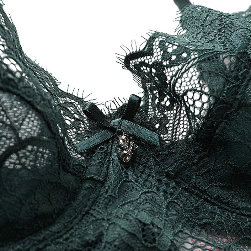 Made of nylon, spandex, and polyester. Beautiful embroidered lace, supportive underwire, sexy design. Adjustable shoulder straps, breathable and comfortable fabric. Hook and eye closure. Perfect for hot nights, everyday lounges, wedding lingerie, honeymoon, and so on.