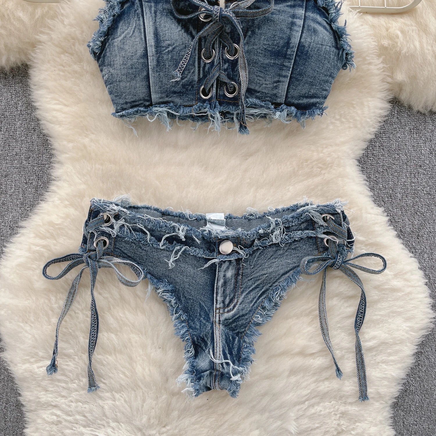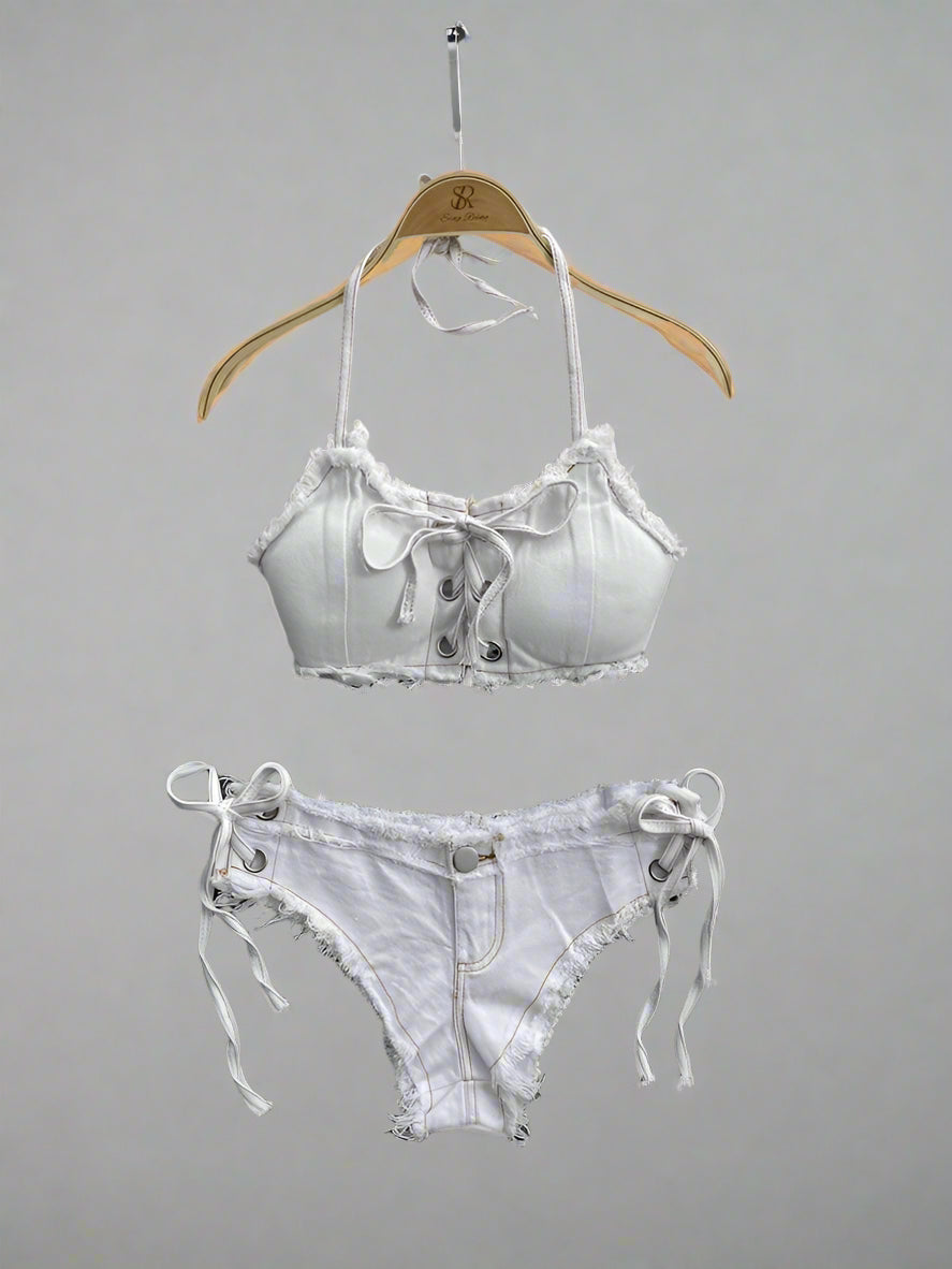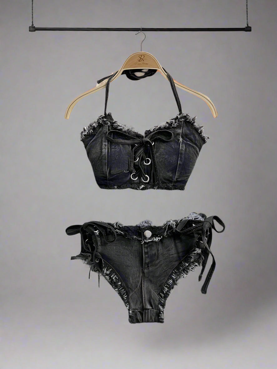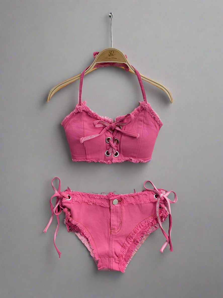 xUnleash your summer style with the Fashionable women's jeans underwear Set.