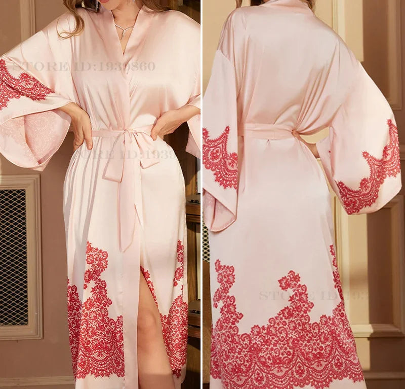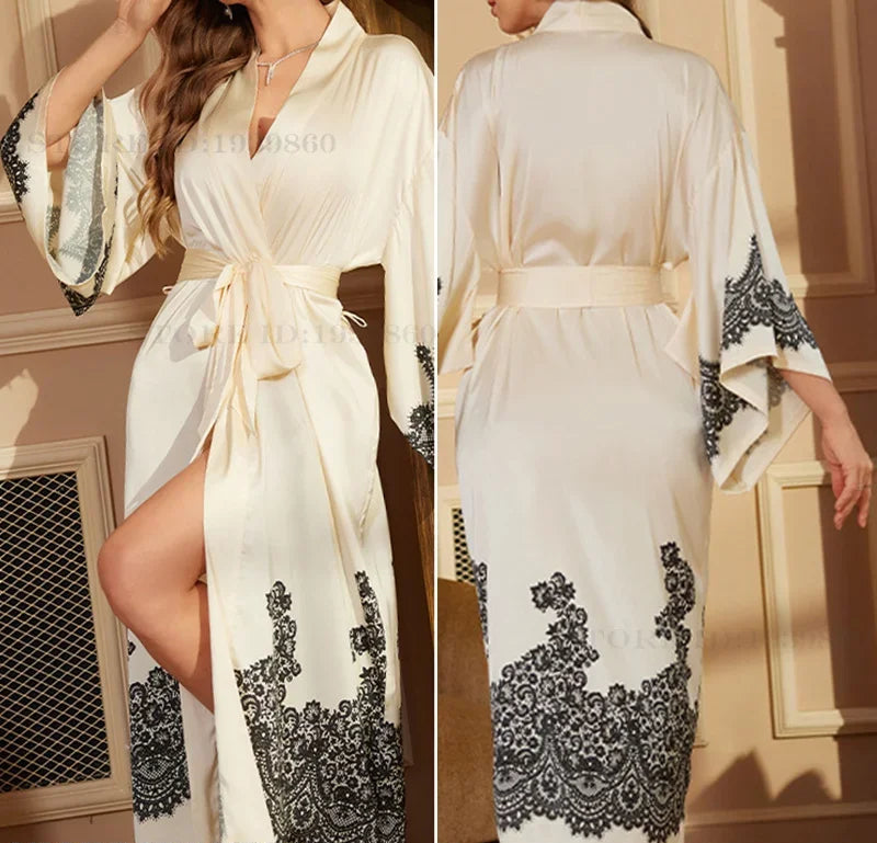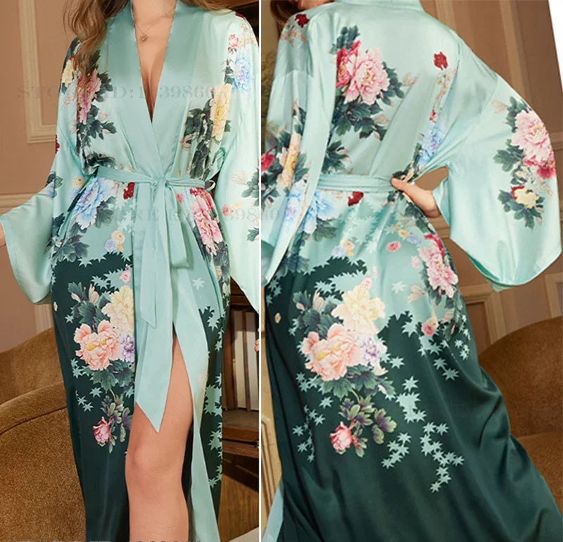 xThis floral satin kimono robe brings elegant comfort to your daily routine.