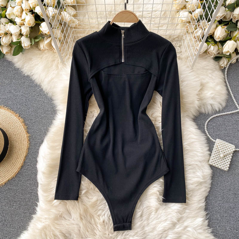 Made of high-quality cotton and polyester. Soft and breathable fabric with good elastic. Solid color, long sleeve hollow out, stand collar bodysuit, makes you more attractive and chic. Good for casual, office, party, outdoor. Hand washes cold, do not bleach, tumble dry, do not dry clean.