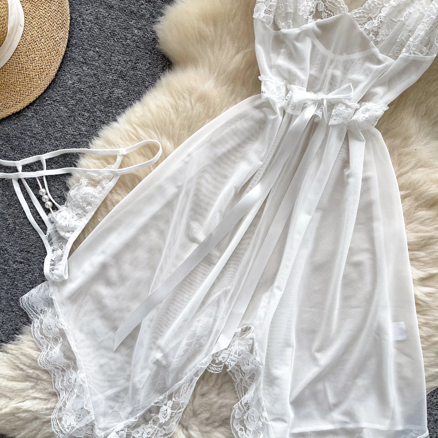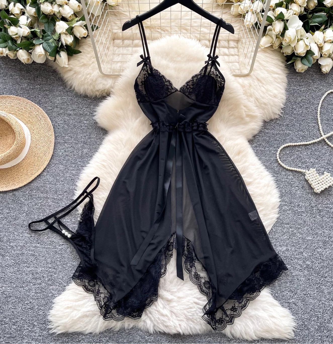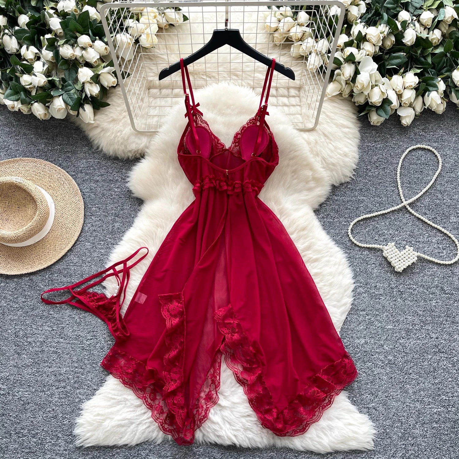 xUnleash your inner goddess in our Irregular Mesh Sleepwear Dress — a striking blend of elegance, sensuality, and comfort designed for the modern woman.