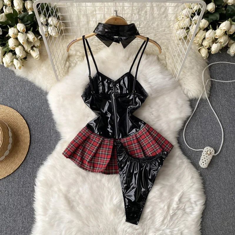 Crafted from sleek, high-shine PU leather, this outfit delivers an unforgettable silhouette that’s both daring and stylish.