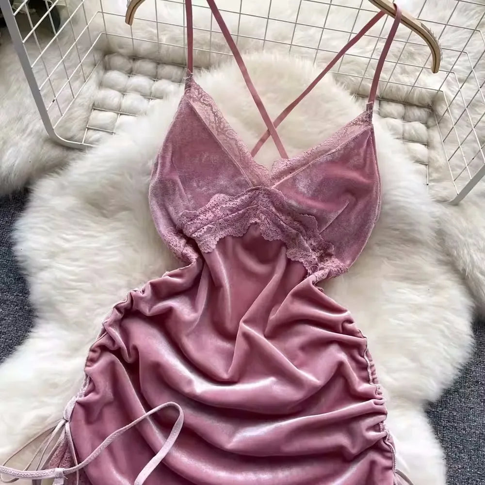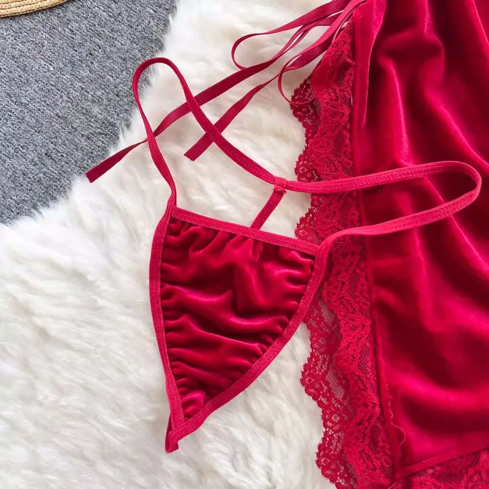 This erotic lingerie piece features an irregular V-neck design that accentuates your décolletage, while the split camisole and backless detail add a touch of seduction.