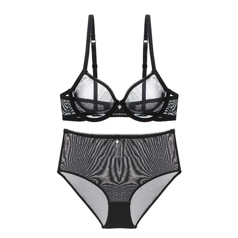 xMade in high-quality fine fabric. Mesh bra lining is breathable, smooth, and elastic, making you comfortable and relaxed. V neck, see-through shows you more attractive and sexy. Stretch adjustable straps bra and high waist panty set. Eye and hook closure.