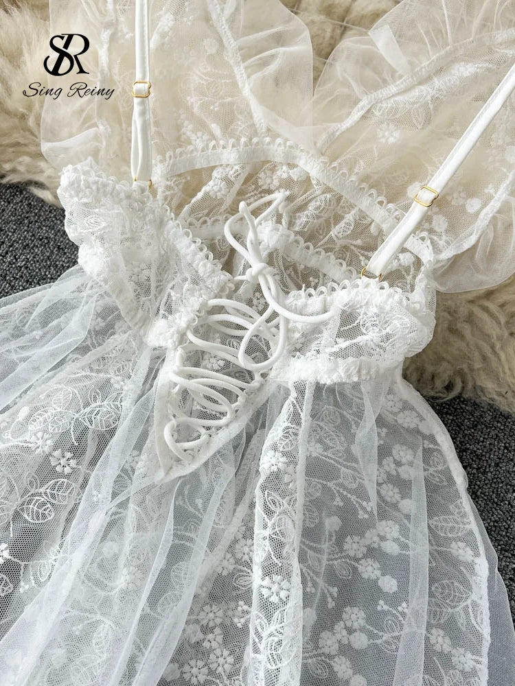 Style: Sheer lace ruffled night dress