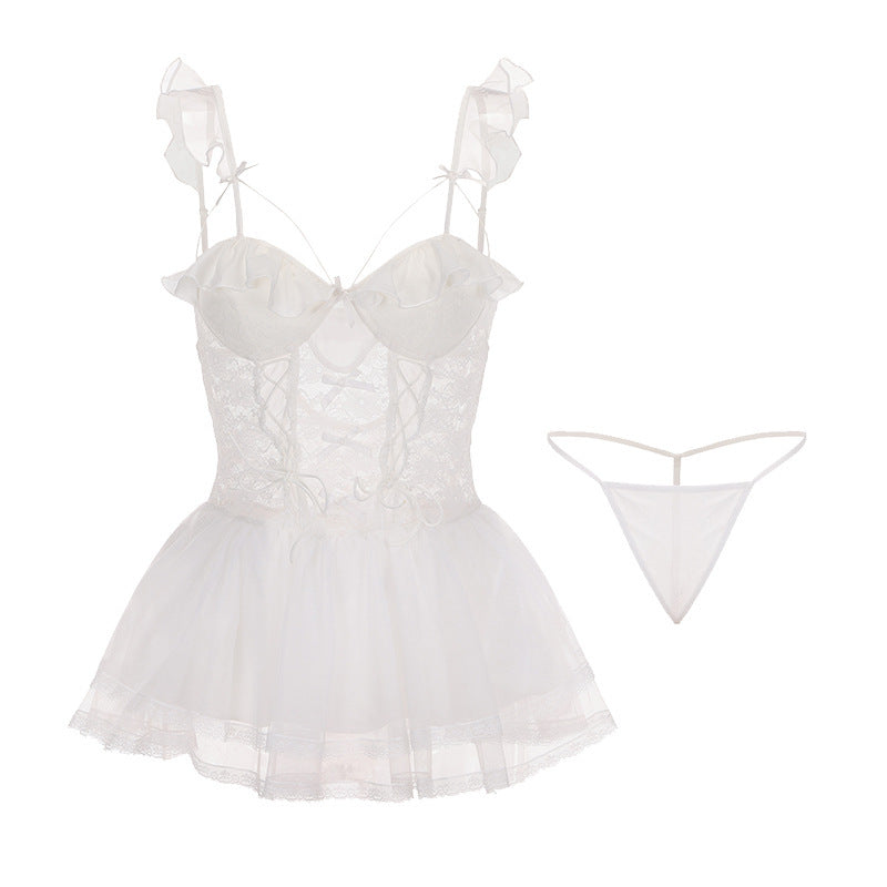 Crafted from a lightweight, breathable mesh fabric with intricate lace detailing, this piece is designed to accentuate femininity and sophistication.