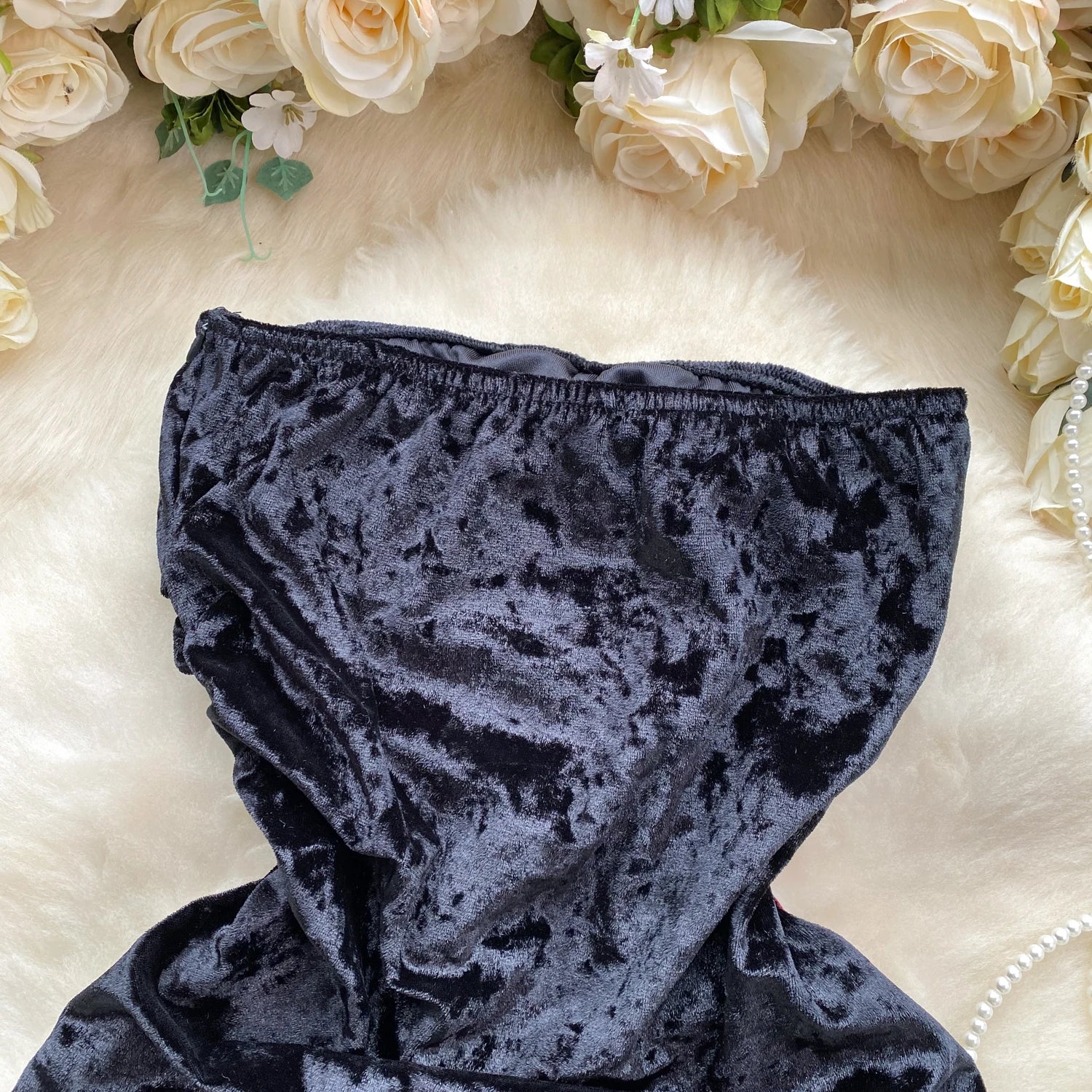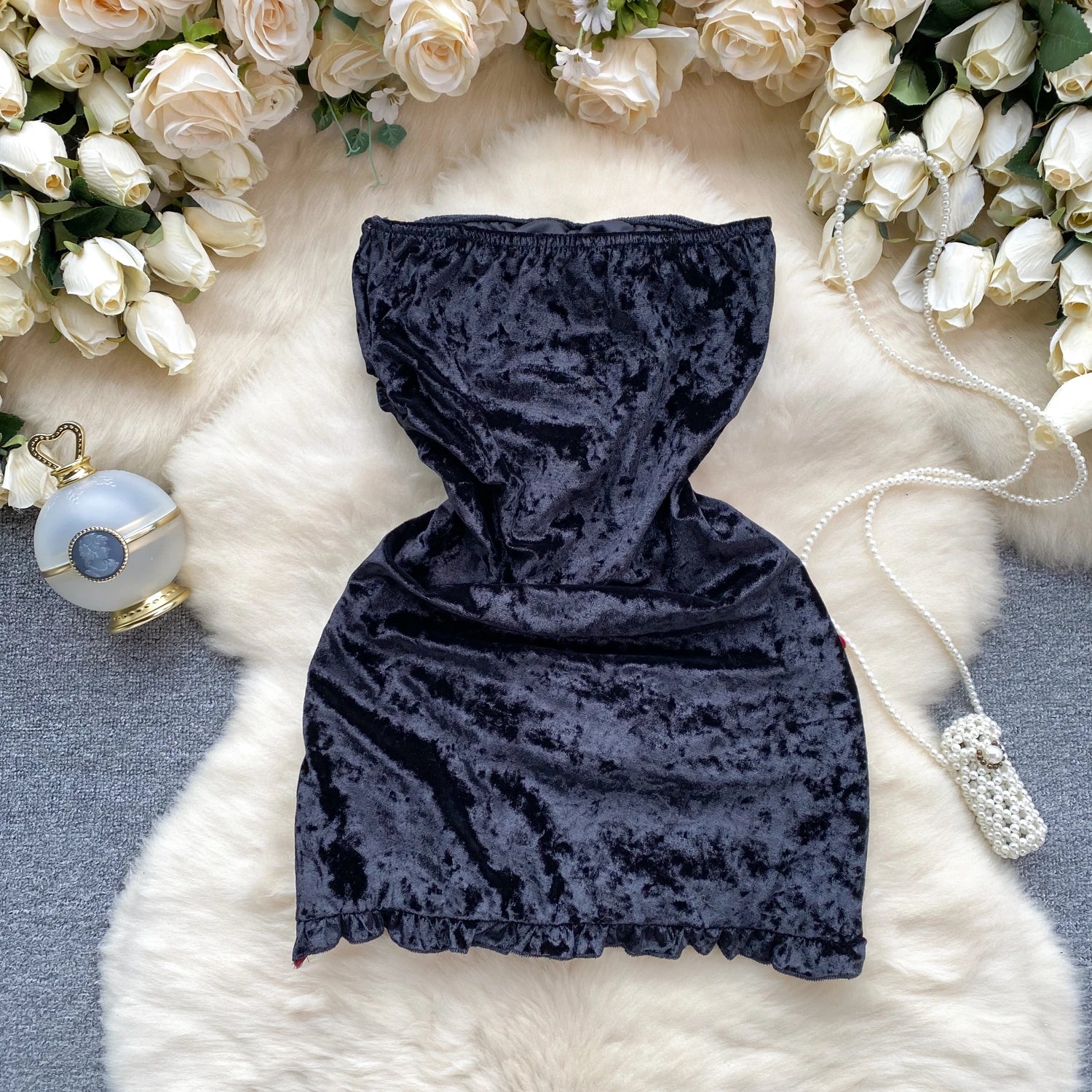 xStep into the spotlight with our Velvet Strapless Bow Sheath Dress, the ultimate fusion of sensuality and modern streetwear.